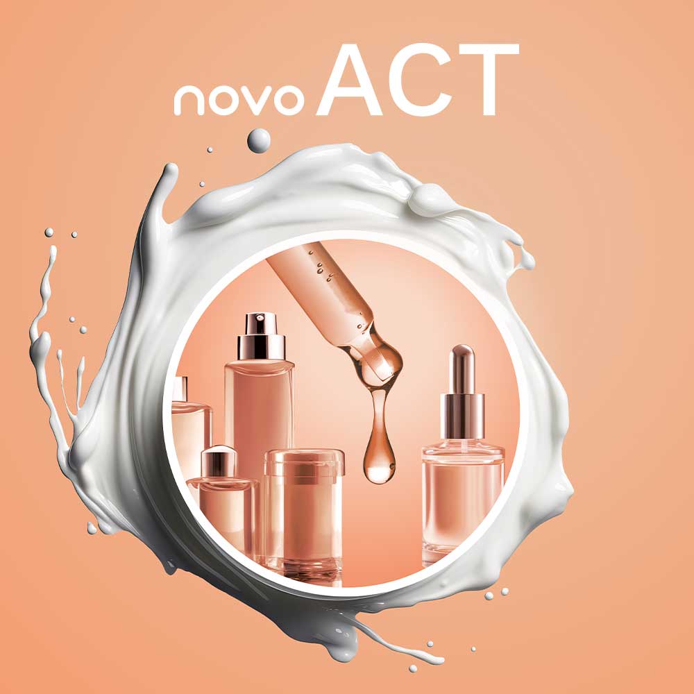 Ein weiterer Vorteil ergibt sich aus der Wirkung des probiotischen Ursprungsstamms Lactobacillus rhamnosus. Dieser hemmt die Bildung von Melanin, dem Pigment, das für dunkle Flecken, ungleichmäßigen Teint oder Hyperpigmentierungen verantwortlich ist. Durch die Reduktion der Melaninproduktion sowie die Hemmung der Tyrosinase sorgt der Wirkstoff für ein gleichmäßigeres Hautbild und einen sichtbar klareren, strahlenderen Teint. Damit deckt novoACT gleich zwei der wichtigsten kosmetischen Bedürfnisse ab: Anti‑Aging und Brightening.